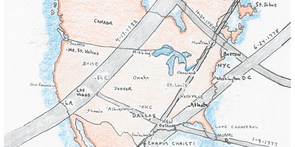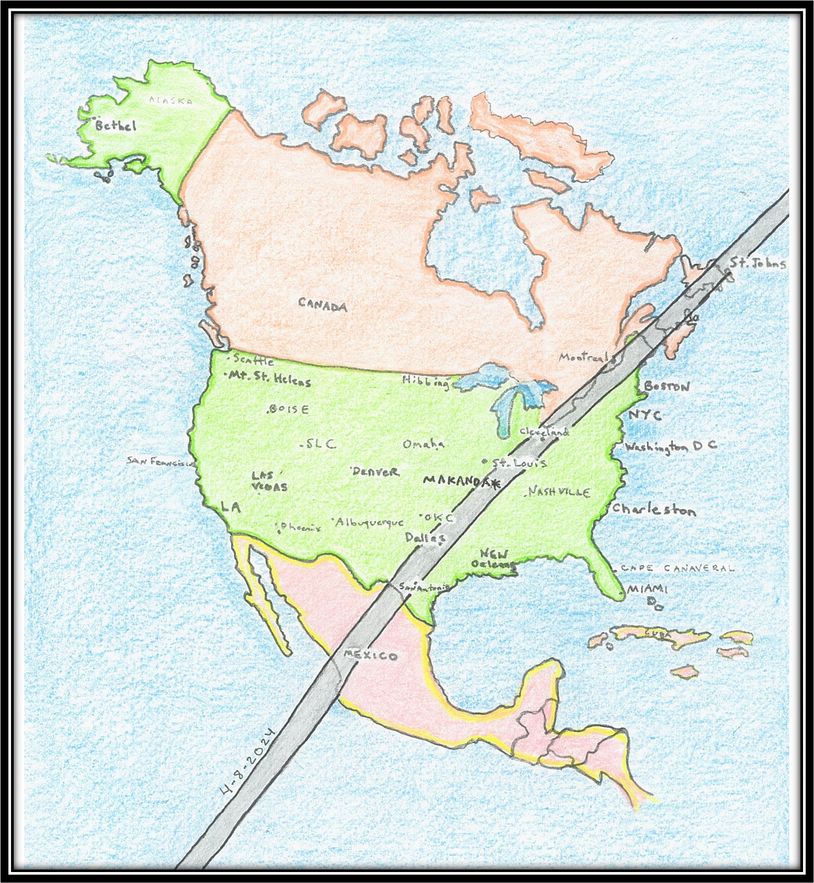 An original map by Sand depicting the American Hepton Tav formed by the Total Solar eclipses of 2017 and 2024. The apex is over the area known as Little Egypt Illinois. Closest town is Makanda.
