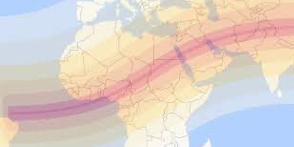 Passing directly over the straits of Gibralter, Totality hugging the north Coast of Africa before diving down Egypt over the Nile and the Valley of the Kings--into Saudi Arabia--including totality in Mecca...exiting into gulf of Oman through Yemen. Jerusalem sees 83% coverage