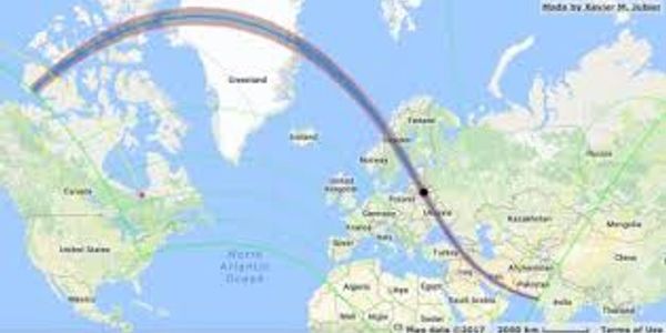 60 hours after the sinking of the Titanic on the night of April 14/15 1912, a total/Hybrid eclipse occurs from South America across the Atlantic , through Europe and deep into Russia.