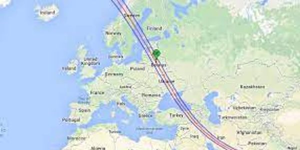 Total solar eclipse travels from the USA to USSR. Path of Totality in Idaho and Montana ( Butte), Canada, Greenland, Scandinavia and then bisecting Russia ---98% totality in St. Petersburg and 95 % in Moscow. Path ends at western border of China. 60% coverage at Nuclear test site at White Sands. 70% at Los Alamos Laboratory.