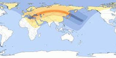 In the first weeks of World War I, a total solar eclipse descends from the Northern latitudes and divides the Eurasian land mass. Empires affected include the Ottoman, Persian, British, French, German, Russian and Austro-Hungarian. Scandanavia split in half. Great cities in totality include Kiev, Karachi, and the ancient city of Ninevah ( modern-day Mosul) in Iraq. Saros Cycle 124,