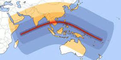 With a maximum length of annularity duration of 12 minutes and 9.17 seconds, this is the longest solar eclipse in the millennium, also the longest duration in Saros 141, one of the longest eclipse that's known to have ever happened. in an opposite convex path less than 6 months later, another solar eclipse--this time a ring of fire- takes aim at Southeast Asia. The path begins in North Africa, dives just south of Sri lanka and comes ashore incredibly at Bangkok, giving the city its second solar eclipse in less than 6 months--an event with a less than one in 80,000 chance of occurring. It is also Bangkok's 3rd eclipse in 7 years ( less than one in 2 million chance ) Path continues on over Vietnam, bisecting that country again for the third time in 7 years before finishing over Hong Kong and Taiwan. Saros 141 ( you'll see it again in the great 1-26-2028 Australia Day Spanish judgment)
