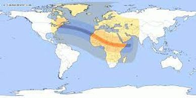 Intersecting the last slave coast eclipse in West Africa, the Total eclipse traverses Africa (Totality in Khartoum), then crosses Arabia ( totality in Jeddah), crosses Iraq near Basra, and then Iran (totality in Shahrud) ends in Russia.