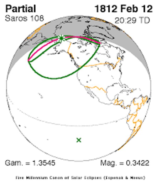 On Abraham Lincoln's 3rd Birthday, another eclipse over northwest North America, with maximum eclipse at almost the same time and same spot as the April 14, 1809 eclipse..