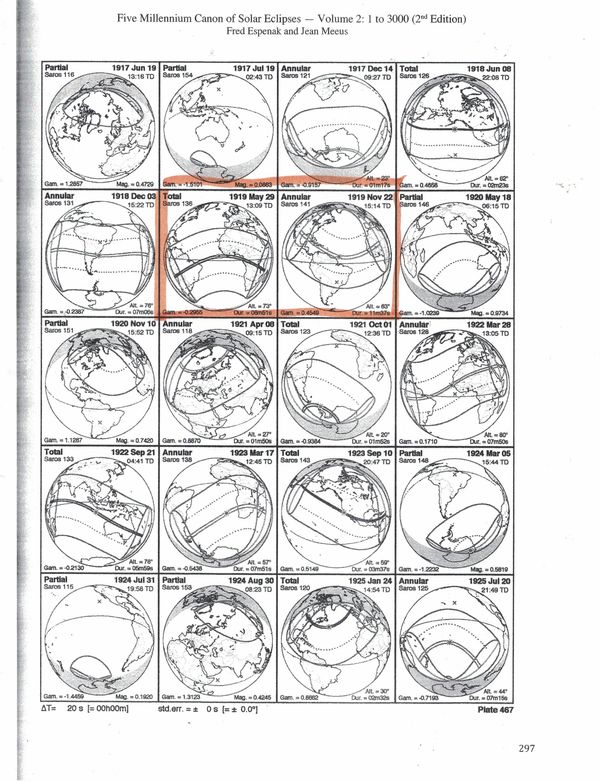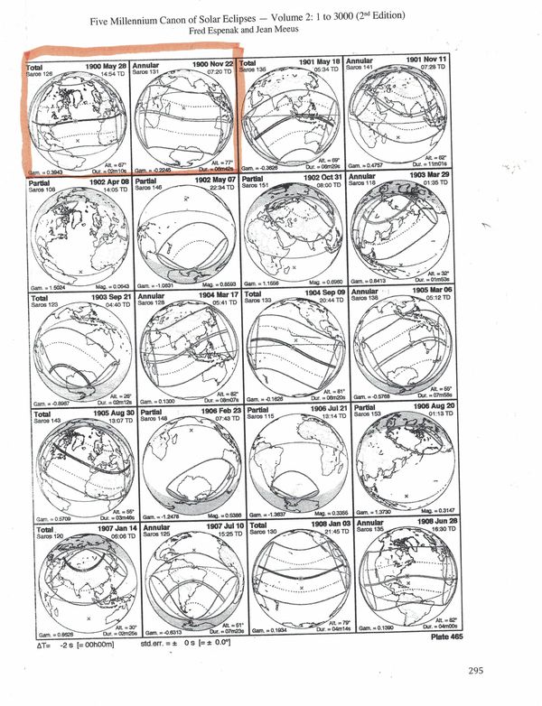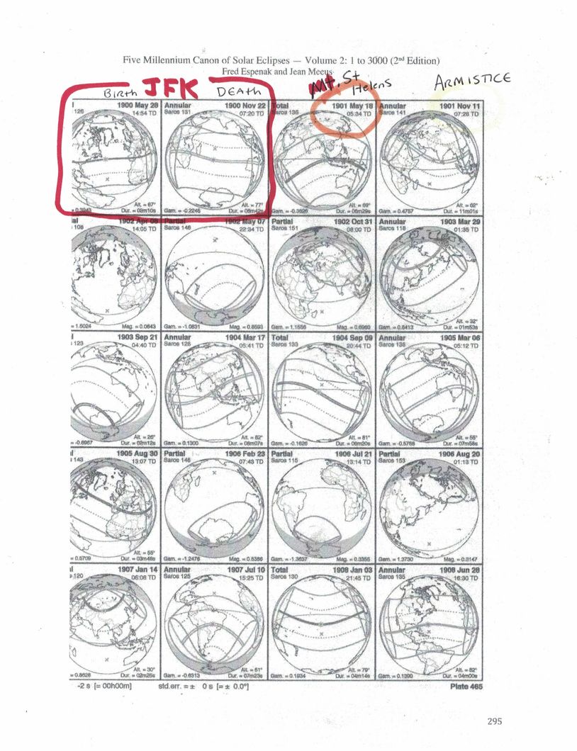 In the first eclipse of the 20th century, we see the kennedy Birth day, followed by the Kennedy Death Day, followed by the Mount Saint Helens Metonic of May 18 and Armistice Day of Nov.11th right in a row.